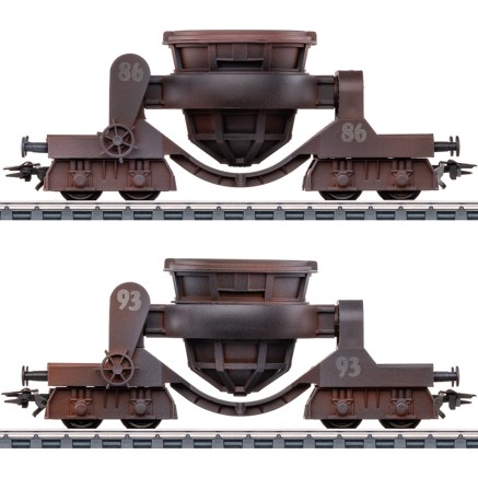 Für den Transport der Schlacke innerhalb des Werksgeländes werden solche Wagen mit kippbarer Pfanne eingesetzt. Die Modelle sind werkseitig gealtert und haben unterschiedliche Betriebsnummern.